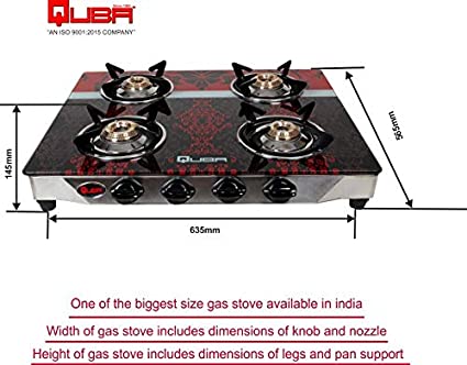 Gas Stove, Home & Kitchen, KitchenQUBA 4 Burner Stainless Gas Stove Steel Body Glass Top with 2 Year Warranty (Manual Ignition)