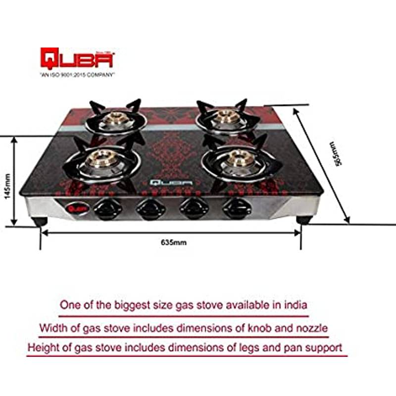 QUBA 4 Burner Stainless Gas Stove Steel Body Glass Top