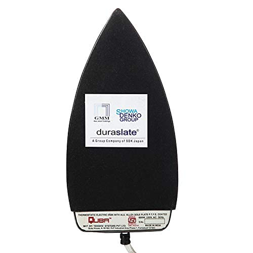 QUBA Non Stick Coated Automatic Thermostat Control Dry Iron with Quick Heat Technology with 6 Fabric Settings and Metal Cover and Shock Proof (Black) (ISI Certified)
